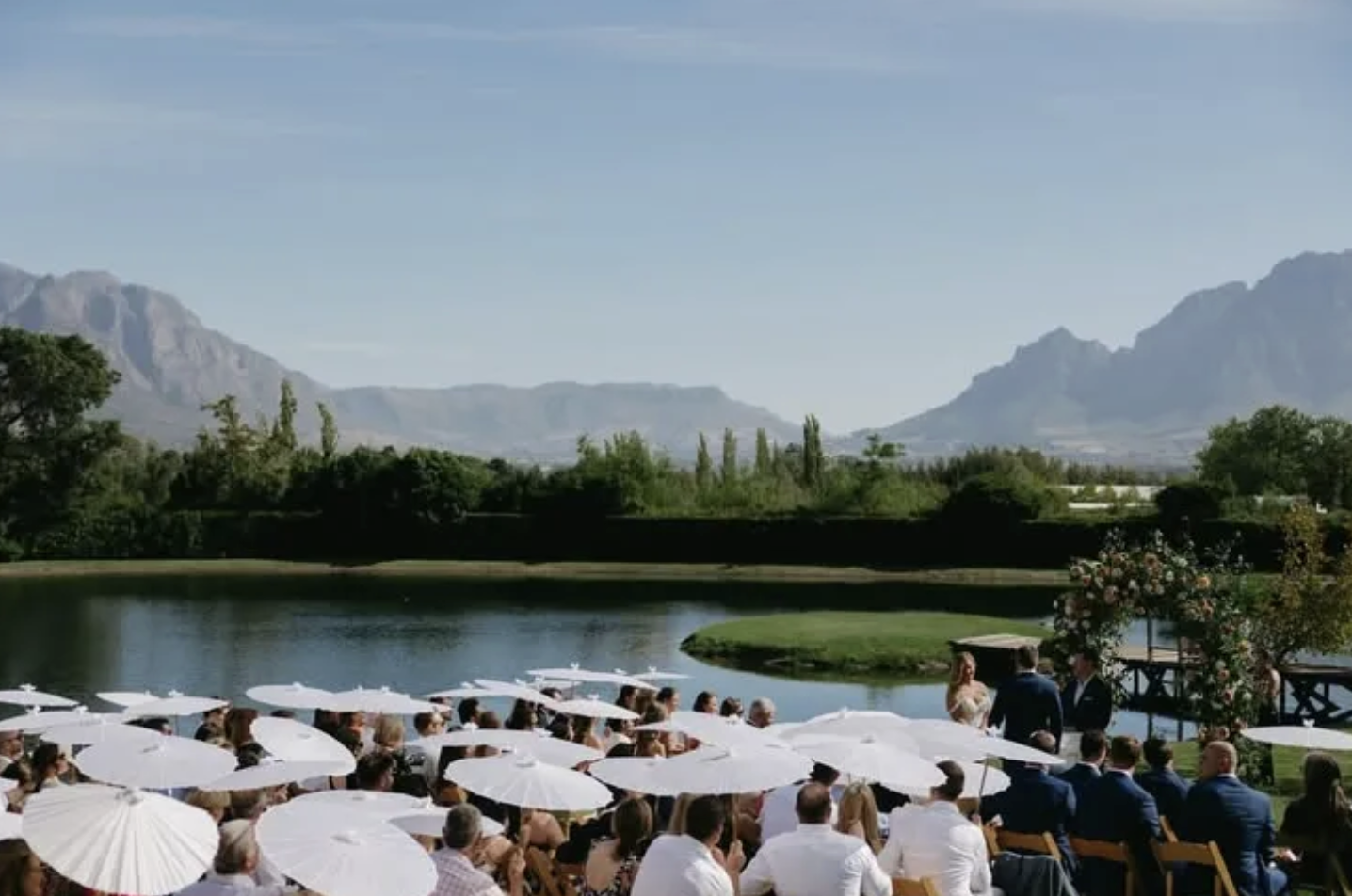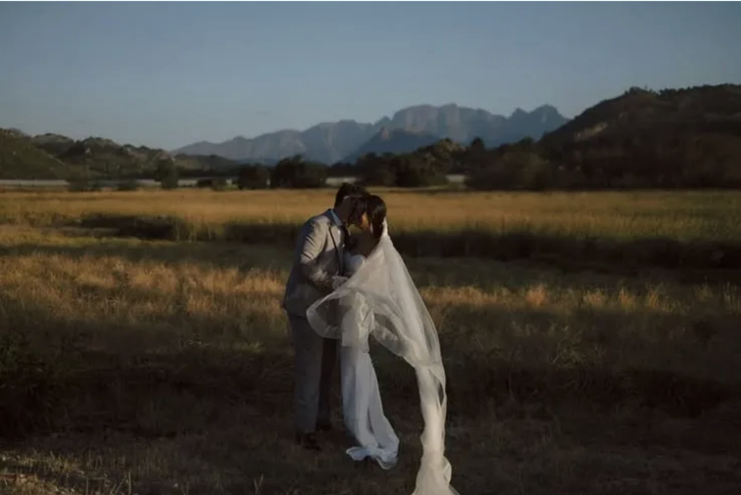 Setting:Rolling vineyards with mountain backdrop, manicured rose gardens, a dam for golden hour moments.