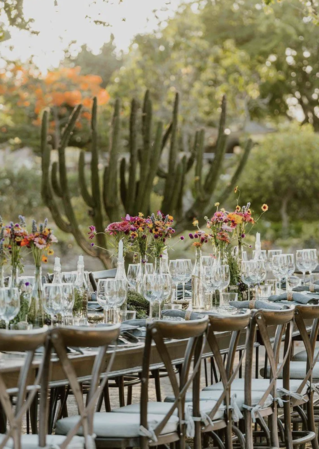 Setting: Tree-canopy ceremonies, desert gardens, string lights at dusk, the kind of natural beauty that needs almost no decoration.